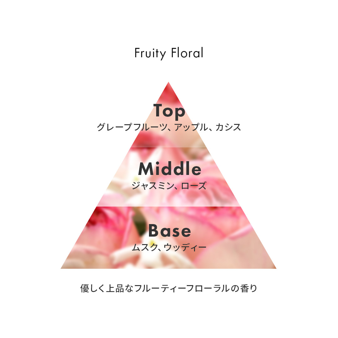- 優しいフローラルの香りの中に、フルーツの甘さと酸味をプラスした上品な香り。